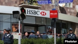 «Сегодня примерно в 14.25 в полицию поступил сигнал о том, что совершено разбойное нападение на филиал банка HSBC, расположенный на перекрестке проспекта Комитаса и улицы Гюльбенкяна. Выяснилось, что совершивший нападение человек, вооруженный ножом, гранатой и винтовкой, ворвался в банк, ранил двух сотрудников, один из которых скончался», - написал на своей странице в Facebook начальник управления информации и по связям с общественностью полиции Армении Ашот Агаронян.