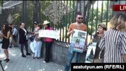 Группа экологов сегодня организовала акцию протеста возле здания Национального собрания, где началась внеочередная сессия по вопросу о дополнительном заборе воды из озера Севан.