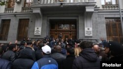 Группа граждан проводит акцию протеста возле здания Генеральной прокуратуры с требованием о том, чтобы депутата парламента Армении шестого созыва, отставного генерала Манвела Григоряна вновь взяли под стражу.